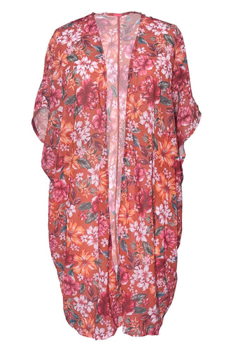 Orange Hibiscus Harmony Kimono Cover Up