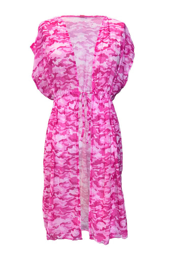 Pink Camo Open Mesh Cover Up w/ Drawstring Waist