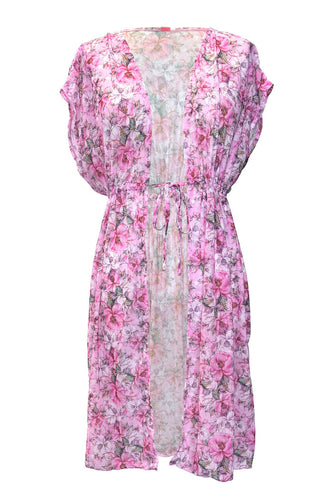 Pink Blossom Open Mesh Cover Up w/ Drawstring Waist