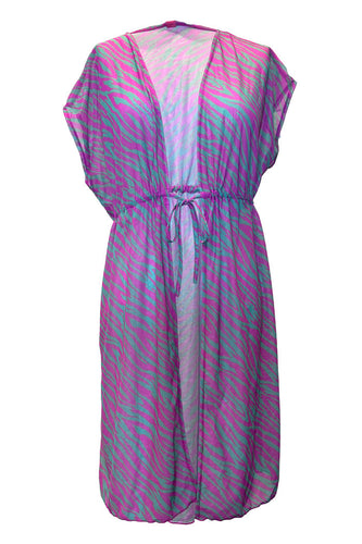 Pink Green Zebra Open Mesh Cover Up w/ Drawstring Waist