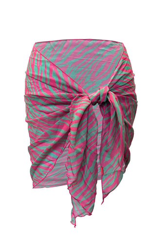 Pink Green Zebra Sheer Chiffon Sarong Cover Up