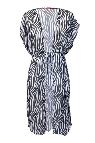 Zebra Open Mesh Cover Up w/ Drawstring Waist